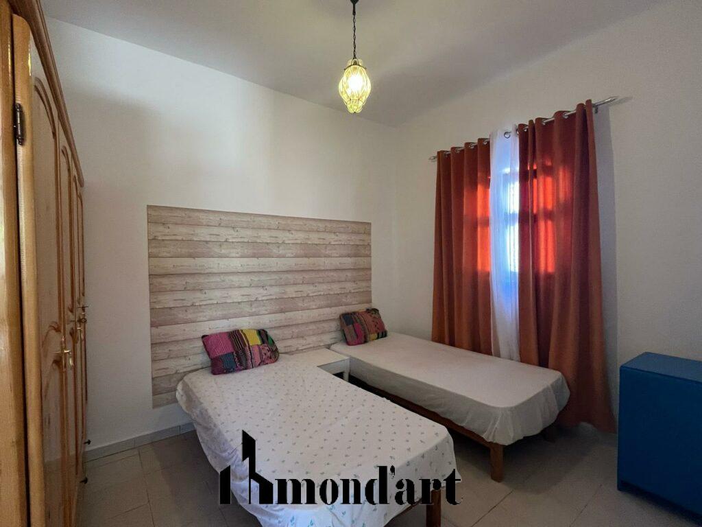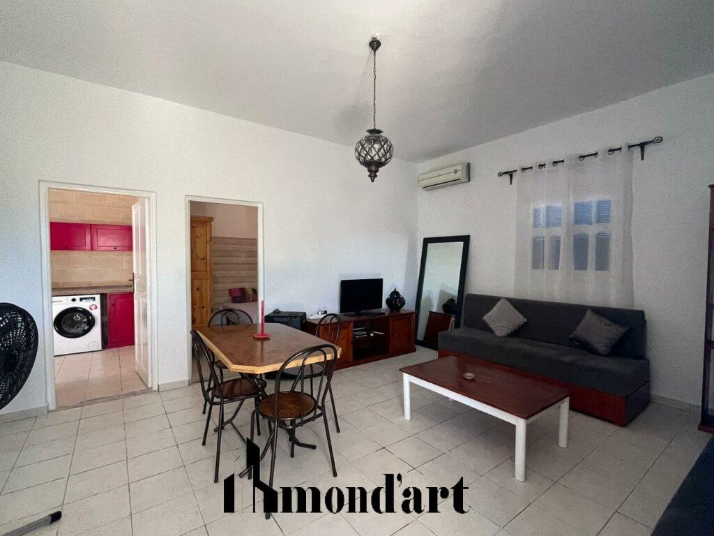 Située dans un quartier calme sur la route du Phare à Midoun . Elle se compose de deux chambres, d’une salle de bains, d’un salon chaleureux, d’une cuisine équipée, d’un jardin privatif et d’un espace parking. Un cadre idéal pour ceux qui recherchent calme, confort et proximité des commodités.