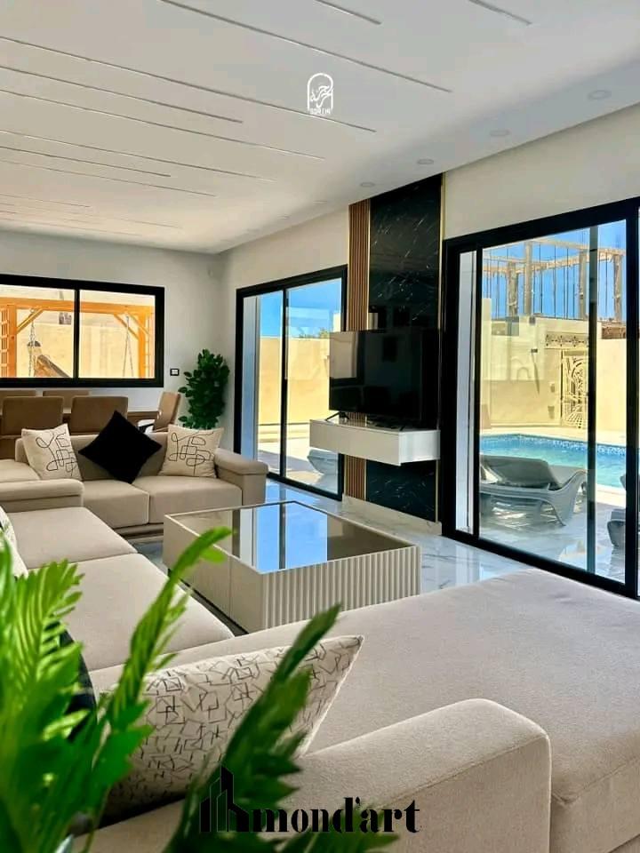 La villa ARMANI, idéalement située à ARKOU de Djerba, vous accueille à seulement 5min en voiture de la plage AGHIR.
