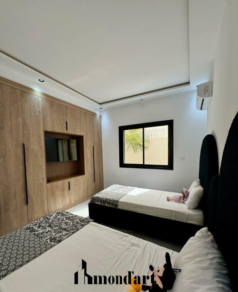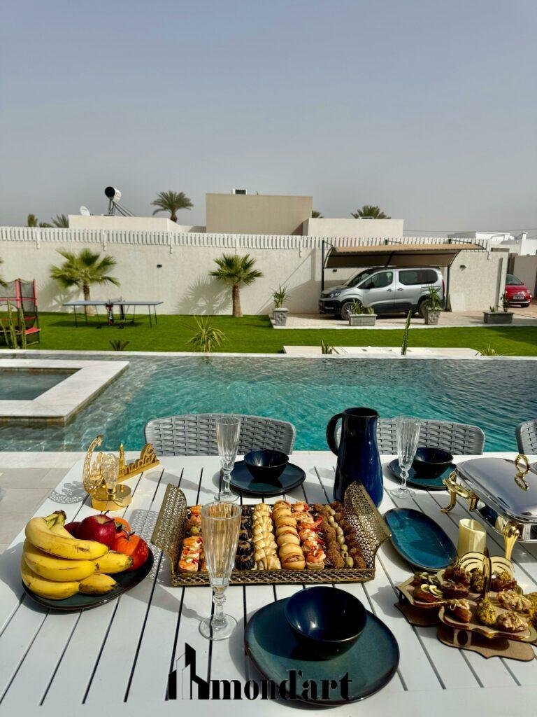 Nichée dans un lotissement prestigieux à Mguersa route du phare Djerba, la Villa Dubaï offre un cadre luxueux et intimiste, sans aucun vis-à-vis. Conçue pour allier confort et élégance, elle dispose de 2suites et de 2chambres, toutes équipées de TV connectés, ainsi que de 3salles de bain et d’une salle d’eau.