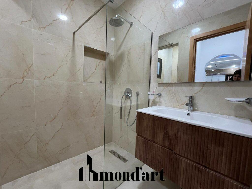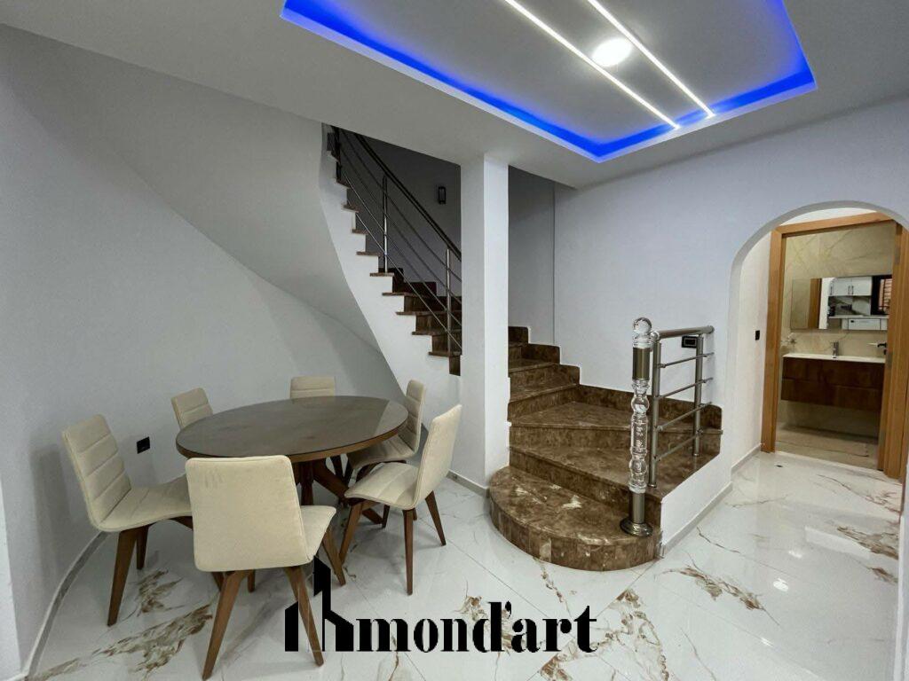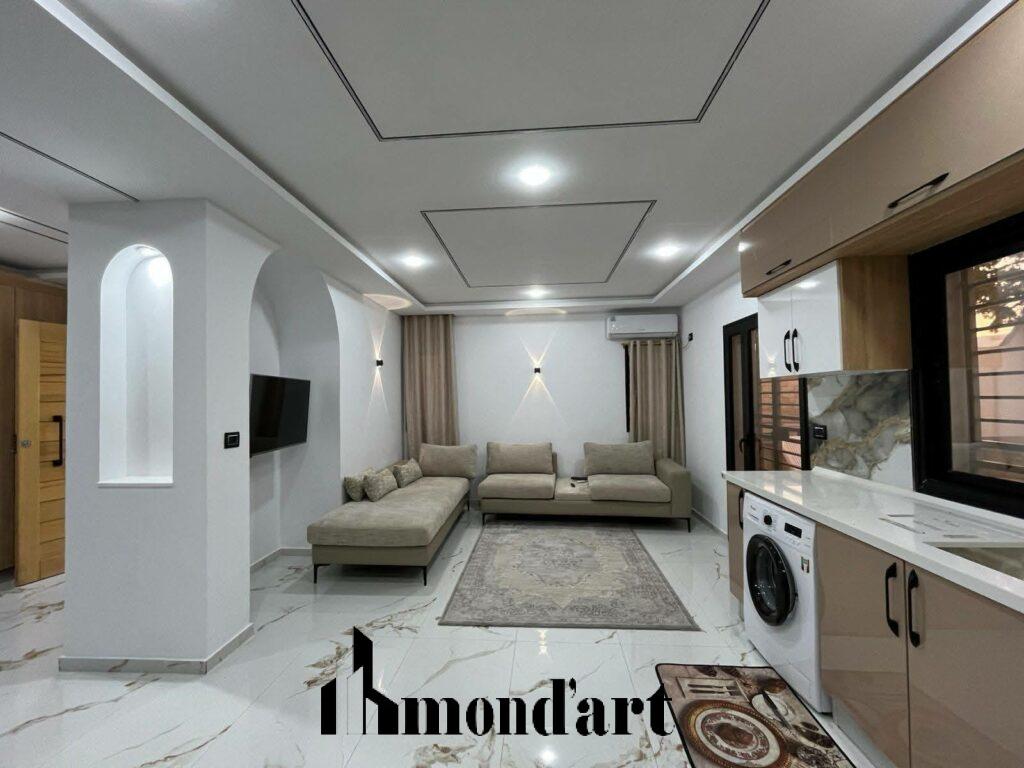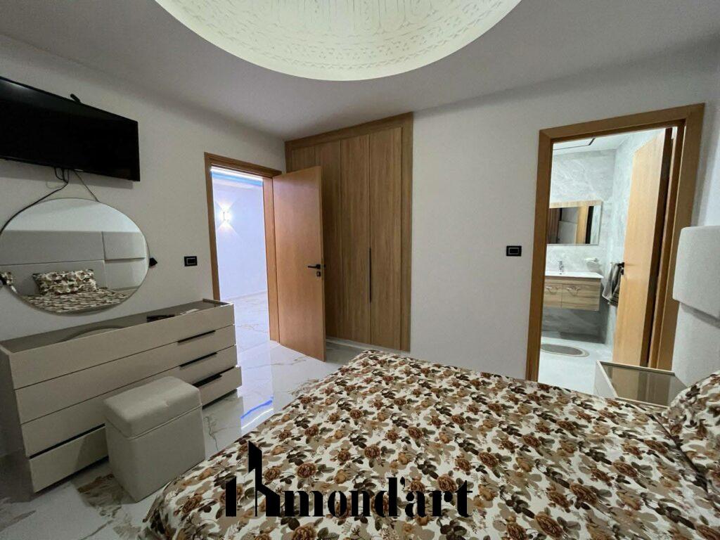 Superbe villa neuve, entièrement climatisée, située dans un quartier calme de Midoun, à seulement 10 minutes en voiture de la plage. Idéale pour une location annuelle, elle offre confort, modernité et tranquillité.