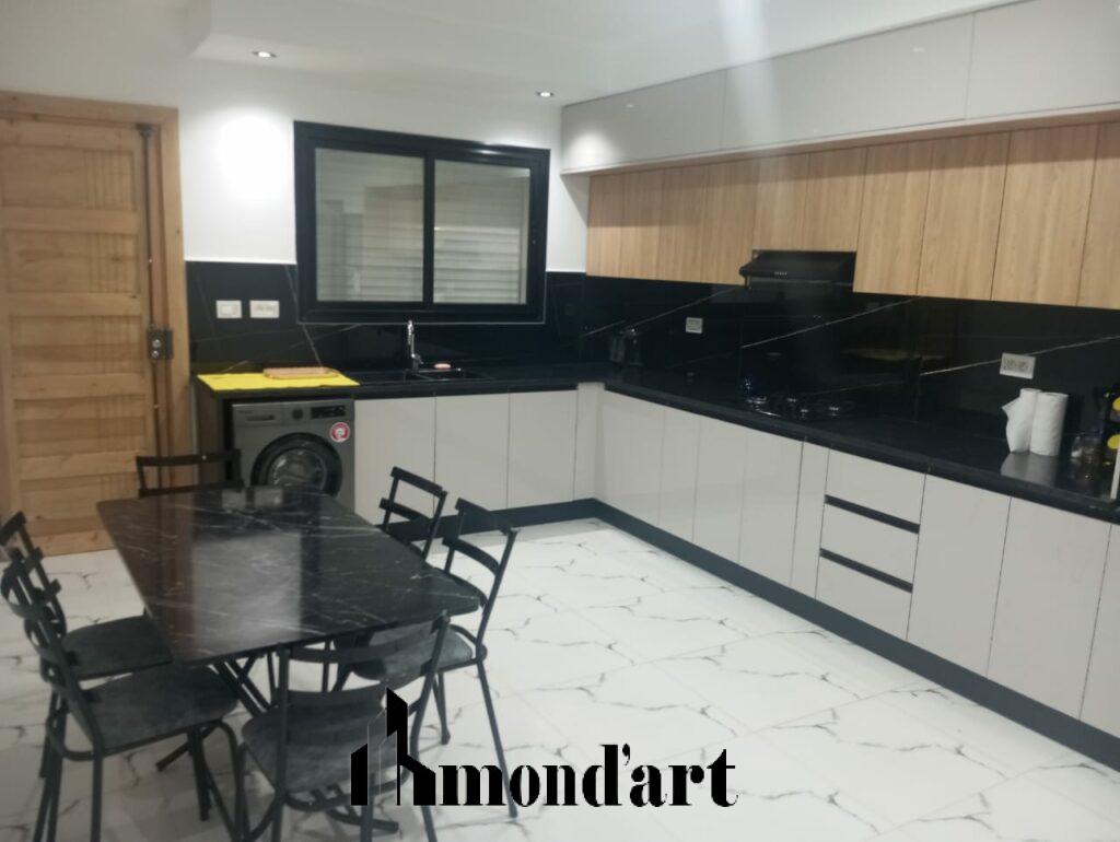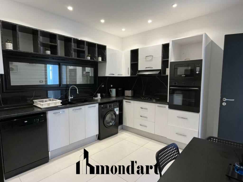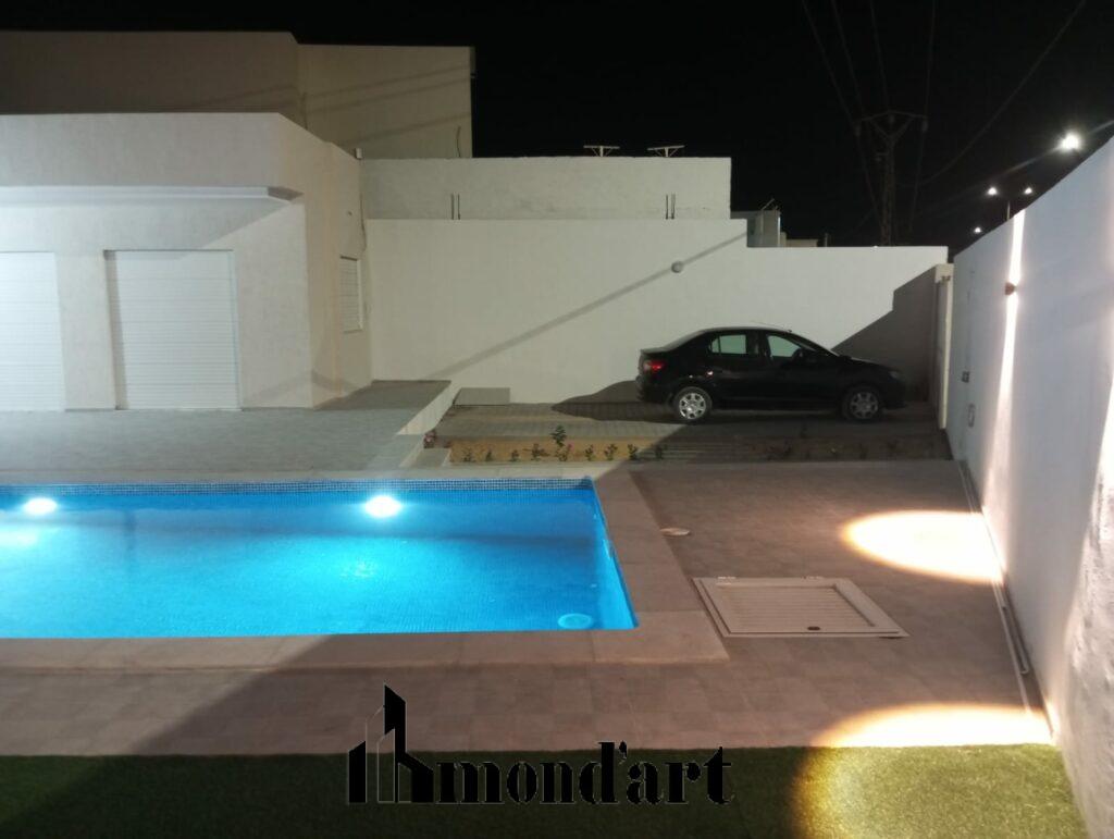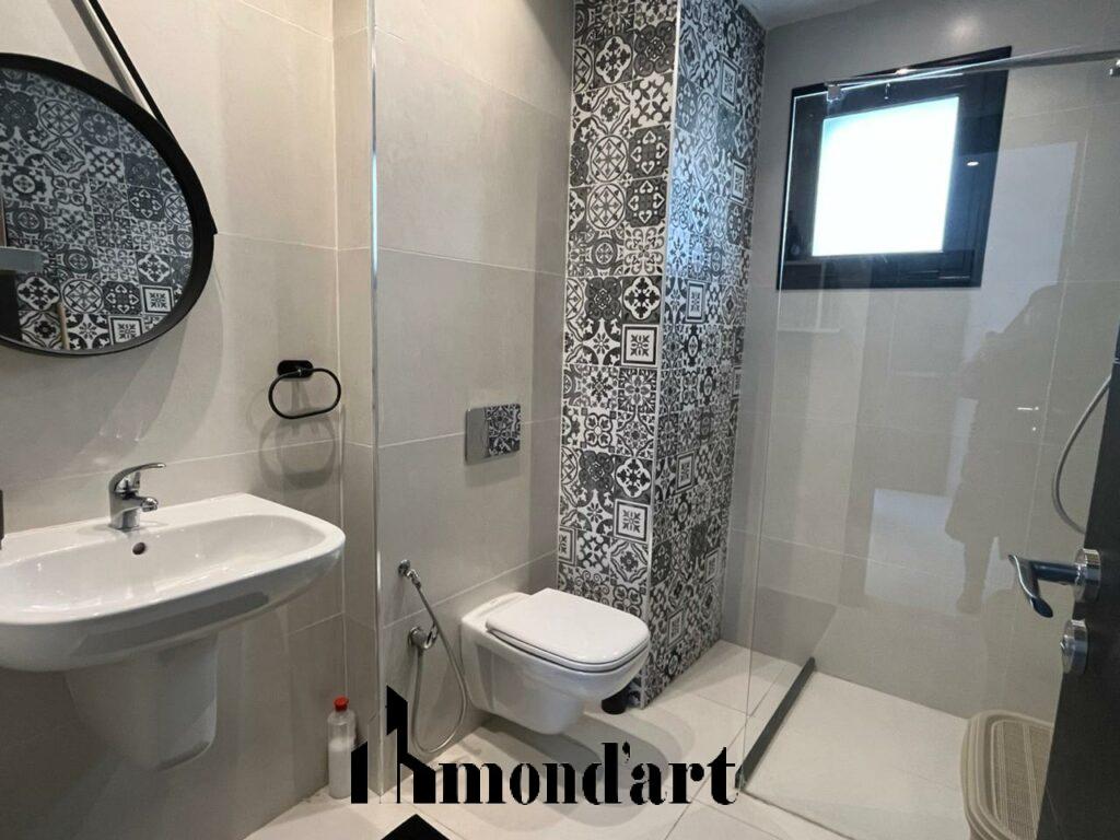 Villa moderne à vendre à Aghir, en zone urbaine, édifiée sur un terrain de 546 m² avec une surface bâtie de 270 m² et disposant d’un titre bleu individuel. Elle offre une suite parentale, trois chambres, trois salles de bain ainsi qu’une cuisine entièrement équipée. À l’extérieur, une piscine 9×4 avec cascade et débordement complète harmonieusement l’espace. La villa est dotée d’un abri voiture intérieur, d’une porte coulissante automatique, d’un système d’alarme et de caméras de surveillance, ainsi que du chauffage central, assurant confort et sécurité dans un cadre résidentiel recherché.