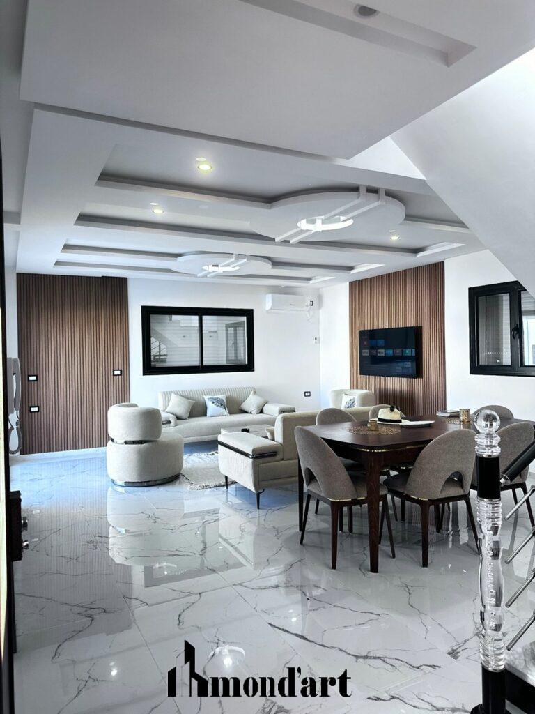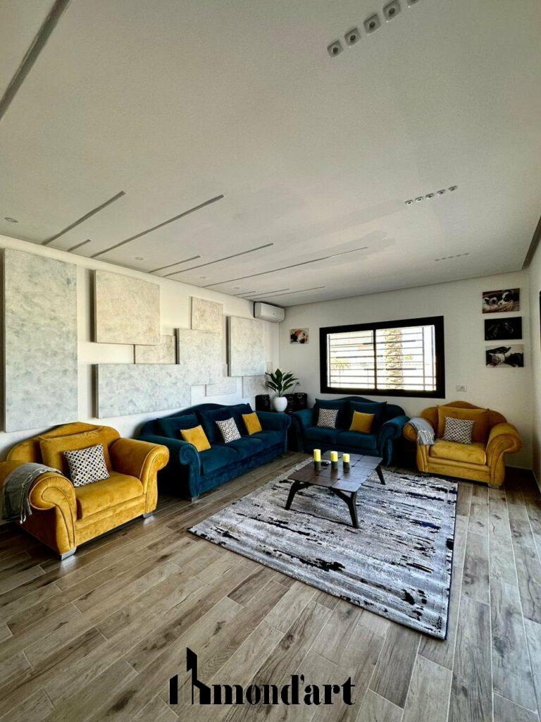 salon et salle a manger Eclairage led et profile led decoratif et un bloc de secours et un climatiseur